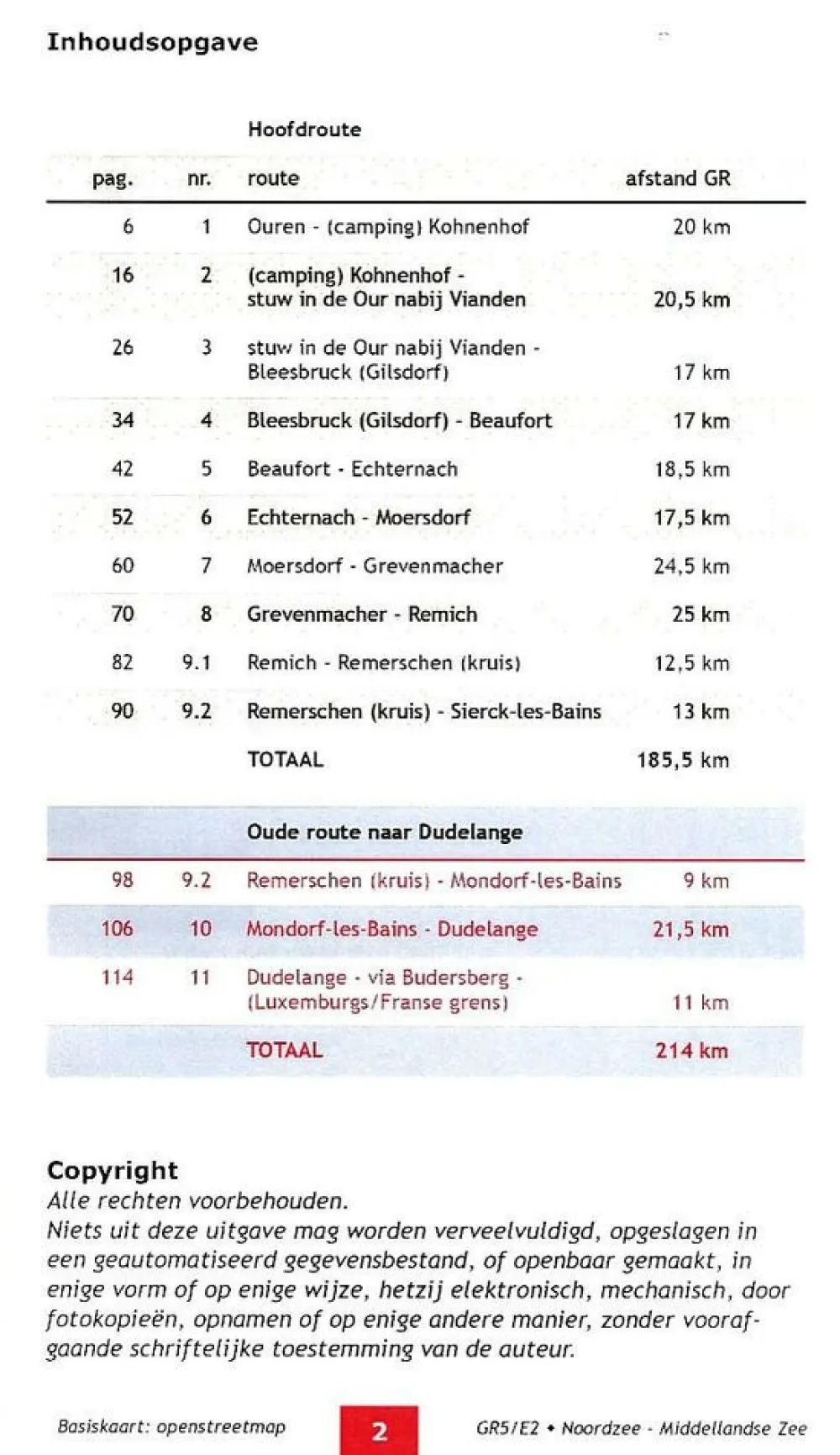 Goed voor 185,5 km wandelplezier. Ook de variant via Remerschen- Dudelange (41 km) is opgenomen.