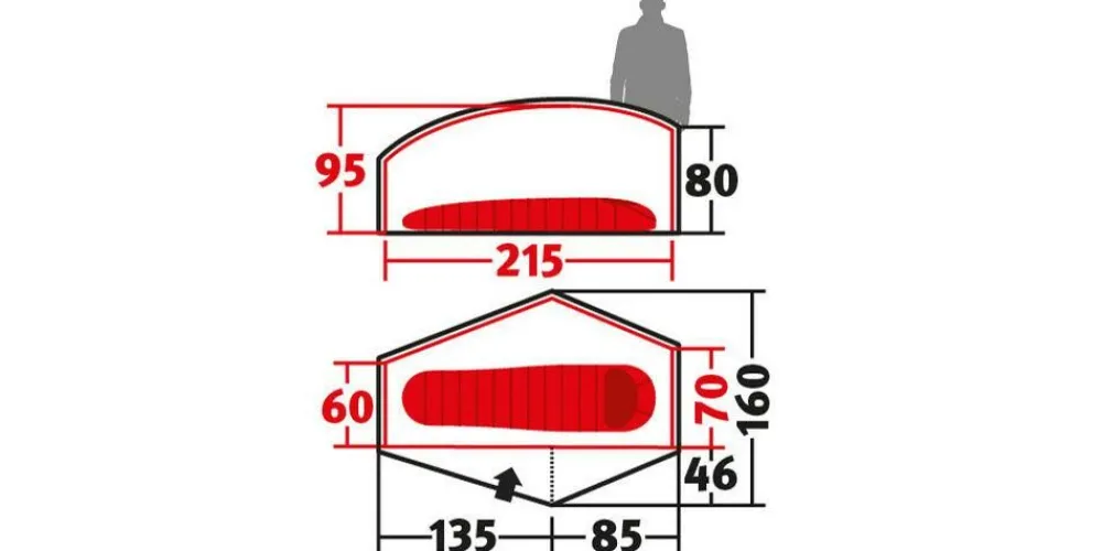 - Afmetingen binnentent (LxWxH) 215 x 70 x 95