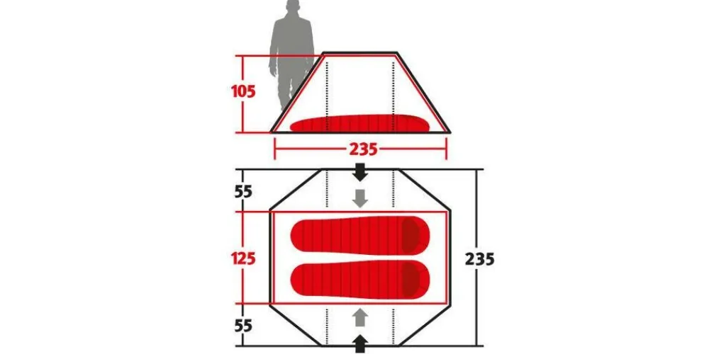 Het nieuwe model tent Pioneer is een 2 persoons tunneltent met lange mouwen en twee zij-ingangen. De geopende deuren kunnen met extra bevestigingsstangen aan de luifel worden gemonteerd. De Pioneer is absoluut wintergeschikt, heeft voldoende netten in de binnentent. De twee even grote binnententdeuren zijn in de bovenste helft afgedekt met muggenhokken. Voor een extra bescherming van de tent raden wij het gebruik van een geschikt grondzeil aan. Het grondzeil voor de Pioneer bedekt alleen de binnentent, niet de apsissen. De Pioneer verschilt van de andere tenten van de Unlimited Line in de materiaalkeuze van de buitentent: Ultra light 30D Rip Stop Nylon, gesiliconiseerd aan beide zijden.