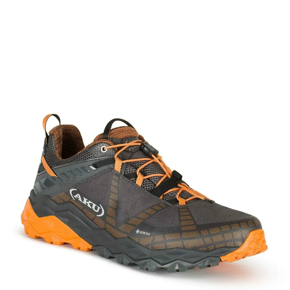 De Aku Flyrock GTX is een sportieve en lichtgewicht wandelschoen ideaal geschikt voor een combinatie tussen wandelen een speedhiken. Dit vanwege zijn soepele en lichte bovenwerk die aansluit als een soort van sok en zijn stevige zool die zorgt voor optimale steun op rotsachtige ondergronden.