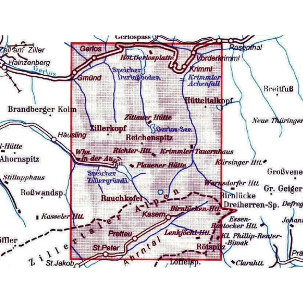 Plaatsen en bergtoppen op de kaart: Zillerkopf, Gerlosspass, Reichenspitz.