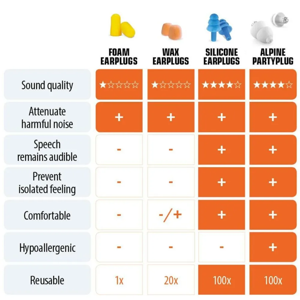 Als je een concert of festival bezoekt, dan wil je van de muziek genieten zonder gehoorschade op te lopen. Alpine PartyPlug-oordoppen zijn speciaal ontworpen om het volume van de muziek naar een veilig niveau terug te brengen. Ondertussen blijft de geluidskwaliteit zeer hoog en communicatie met vrienden mogelijk. PartyPlug-oordoppen kunnen de hele dag (of nacht) gedragen worden. Door het zachte en flexibele thermoplastische materiaal vormt de oordop zich naar jouw gehoorgang. Dit materiaal is bovendien hypoallergeen en siliconevrij. Dat wil zeggen dat je geen last krijgt van allergische reacties of jeuk. De PartyPlug-oordopjes kun je ruim 100 keer gebruiken. Ze gaan dus met gemak het hele festivalseizoen mee. Wees lief voor je oren en zorg dat je nog veel langer van je favoriete band of dj kunt genieten.