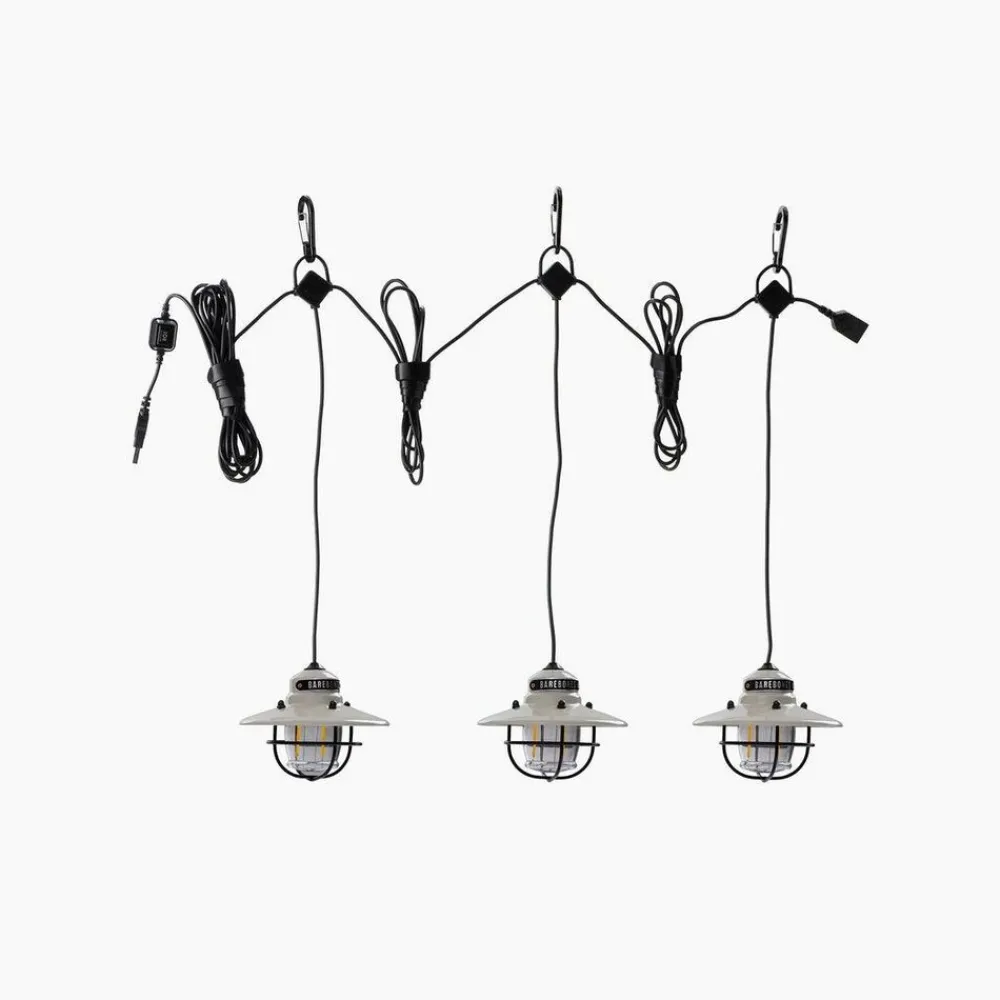 Voeg verlichting en sfeer toe, of u nu buiten het netwerk bent of in het hart van de stad. De Edison String Lights van Barebones maken het eenvoudig om je buitenruimte te stylen. Drie LED Edison-lampen kunnen met één snoer worden aangesloten, zodat ze gemakkelijk kunnen worden opgehangen en verdeeld. Verbind maximaal twee Edison String Light-sets met elkaar voor nog meer licht en sfeer.