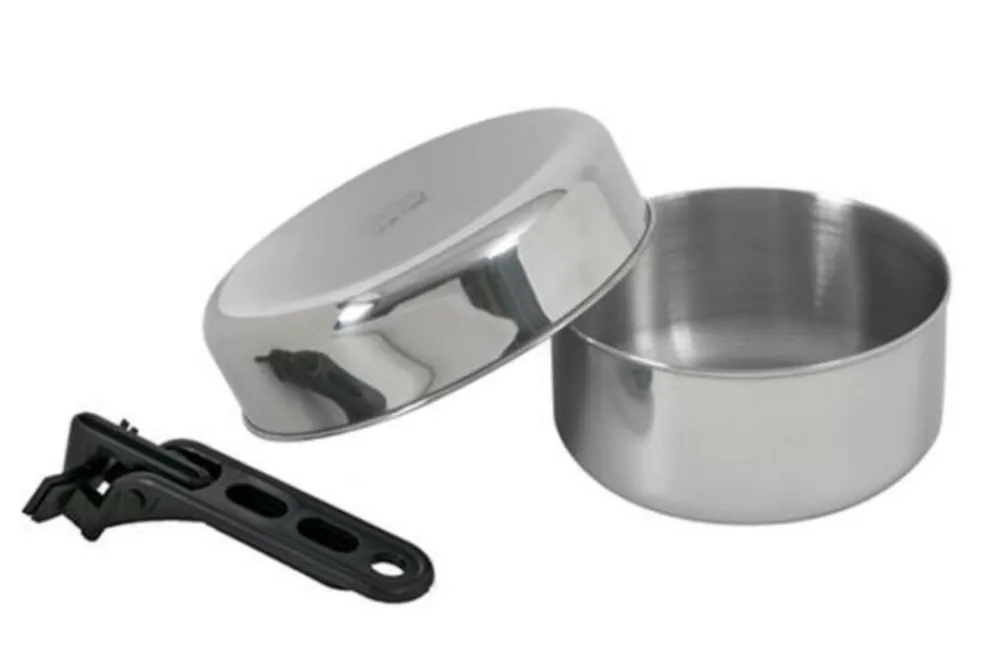 De Stainless steel set Biwac Junior van Basic Nature, is een pannensetje van RVS, die mooi in elkaar past.