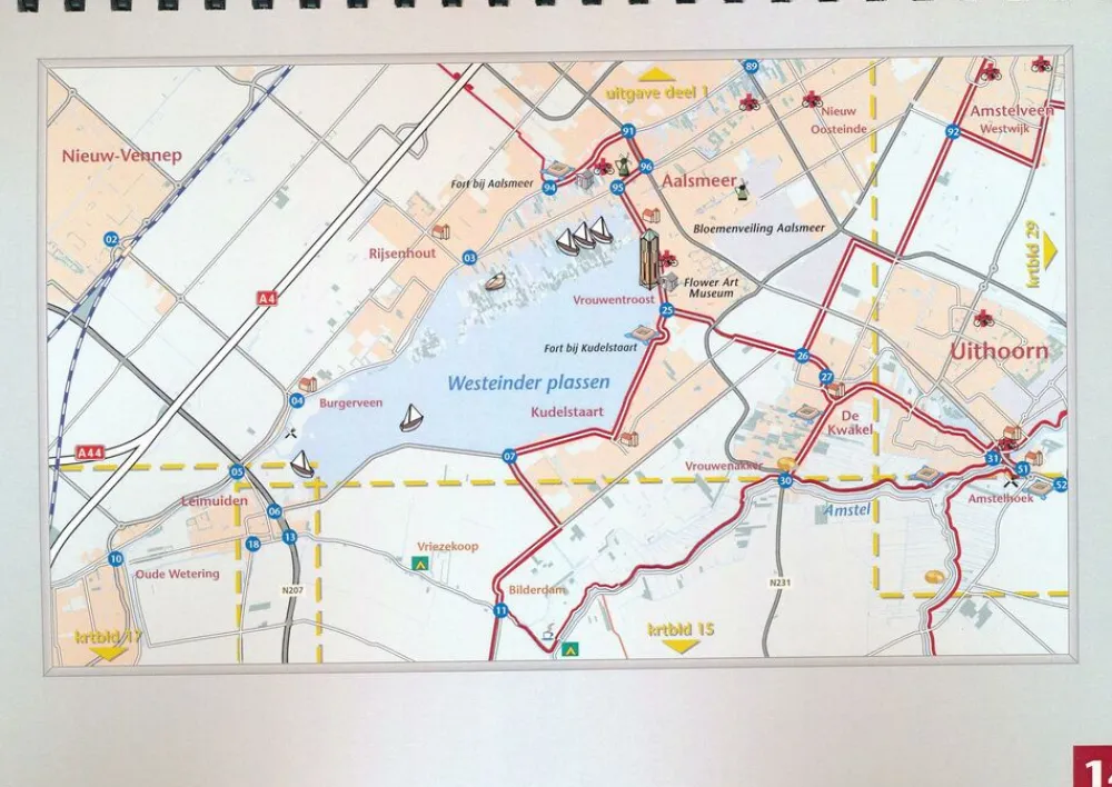 Voor ieder die vanaf de duinen tussen Zandvoort en Hoek van Holland het achterland wil verkennen met de bloeiende tulpen in de Bollenstreek, het Groene Hart met zijn talloze dijkjes, molens, plassen, waar de grond weliswaar per liter wordt verkocht maar waar de Hollanders hun bestaan op het water hebben veroverd en daar de mooiste steden en stadjes als Gouda en Oudewater hebben laten verrijzen. Hier fiets je langs stroompjes en rivieren waaraan zoals bij de Vecht de rijke buitenplaatsen ontstonden.