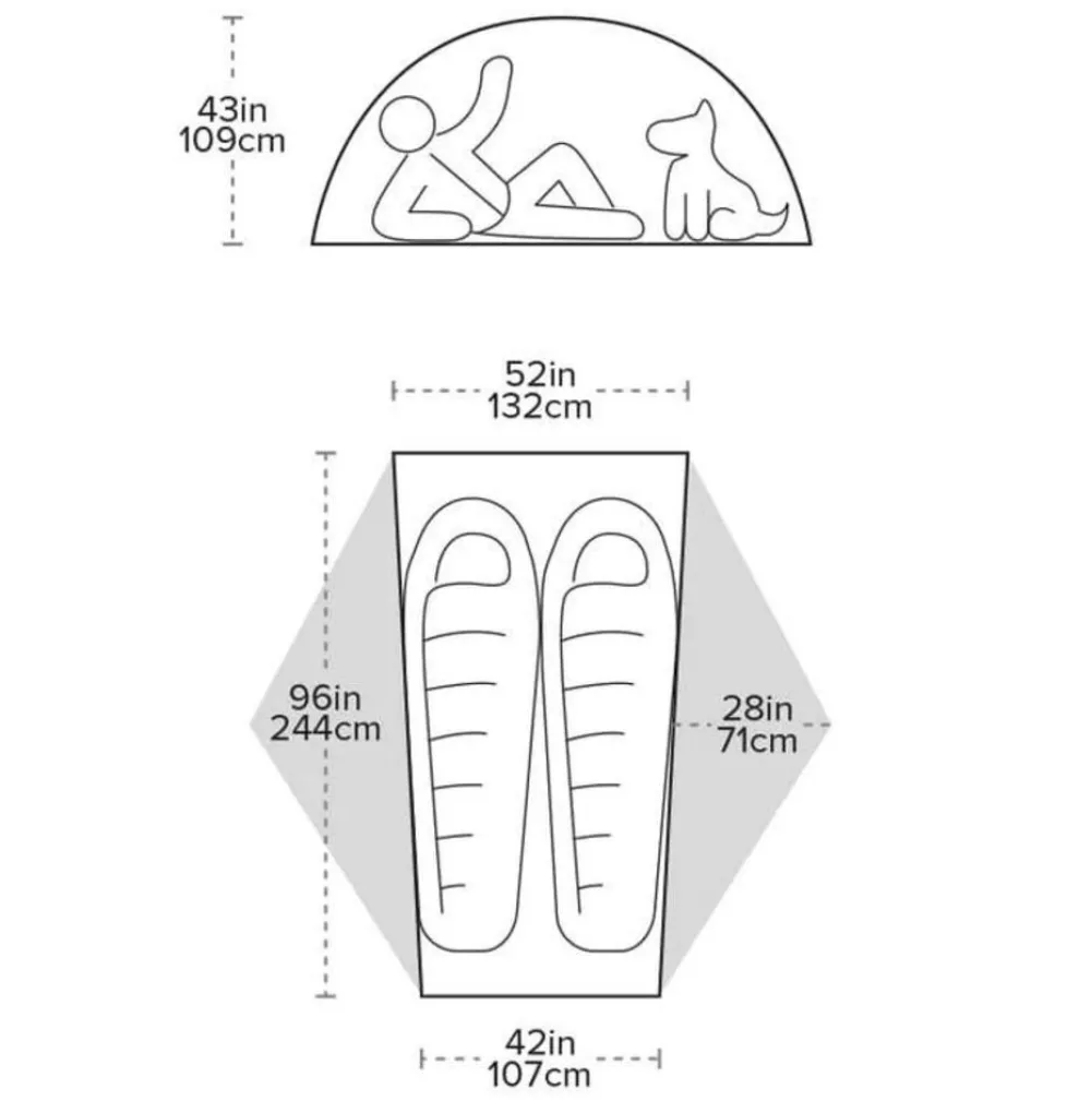 - Om de levensduur van je tentvloer te verlengen, raden we aan om een Big Agnes voetafdruk te gebruiken – apart verkrijgbaar.