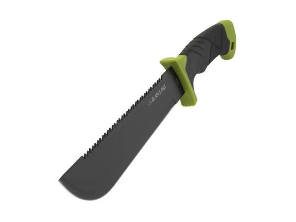 De Black Eagle Arenal Forest Green is een krachtig en veelzijdige machete die traditie en functionaliteit samenbrengt. Het lemmet is ontworpen met een breed snijvlak aan de onderzijde en een zaagfunctie langs de bovenzijde, waardoor het zowel geschikt is voor het hakken van takken en onkruid als voor het doorzagen van dikkere houtsoorten. De vorm van deze machete vindt zijn oorsprong in Costa Rica en draagt daarom de naam Arenal, een verwijzing naar de beroemde vulkaan die omgeven wordt door dicht regenwoud, indrukwekkende watervallen en rustige meren.