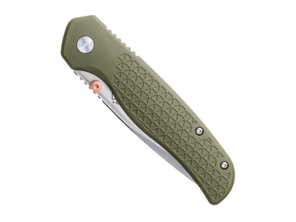 De Black Eagle Picos is een no-nonsense EDC mes met een moderne subtiele styling en prestaties die zijn lofwaardige naam eer aan doen. Vernoemd naar de Picos de Europa regio, letterlijk de toppen van Europa. Deze regio is echter veel meer dan prachtige bergen, de weelderige regio is al eeuwenlang bewoond en biedt een uniek beeld van hoe echt samenleven met de natuur eruit ziet. De Picos is eenvoudig één handig open te klappen door zijn Duimstud, vervolgens houdt de linerlock het mes stevig in geopende stand. Het drop point lemmet is gemaakt van 8Cr13MoV staal. Een staalsoort met uitstekende taaiheid en zeer goede herslijpbaarheid. Verder is deze afgewerkt met een satijnen afwerking, dit geeft de Picos een hoogwaardige uitstraling. Het heft is gemaakt van glasvezel versterkte nylon (FRN) schalen met geïntegreerde roestvrijstalen liners. Dit heft maakt het mes niet alleen verrassend licht, maar door het meegegoten uitgesproken patroon heeft de Picos een fantastische grip in alle weersomstandigheden. Het mes uitgerust met een deep-carry draagclip.