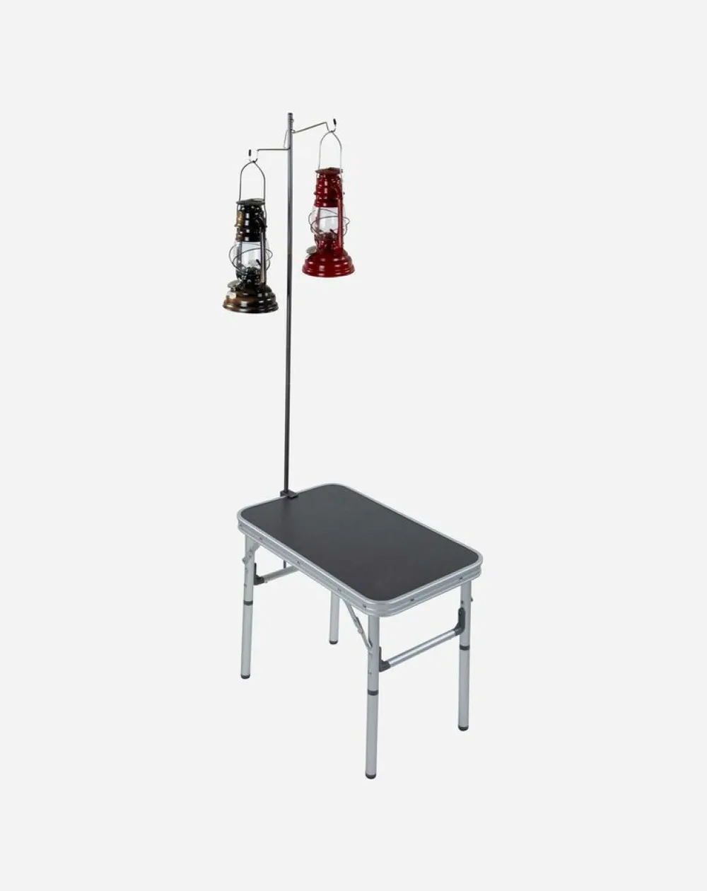 Mooie lampstandaard met klem en punt. Met deze standaard breng je wat sfeer op de tafel of in de tuin. De standaard kan makkelijk bevestigd worden en er kunnen 2 lampen aan gehangen worden. De lampstandaard is voorzien van klem om te bevestigen aan een tafel, maar ook van een punt om hem in de grond te steken. De standaard is gemaakt van staal en ideaal te gebruiken op de camping of in de tuin.