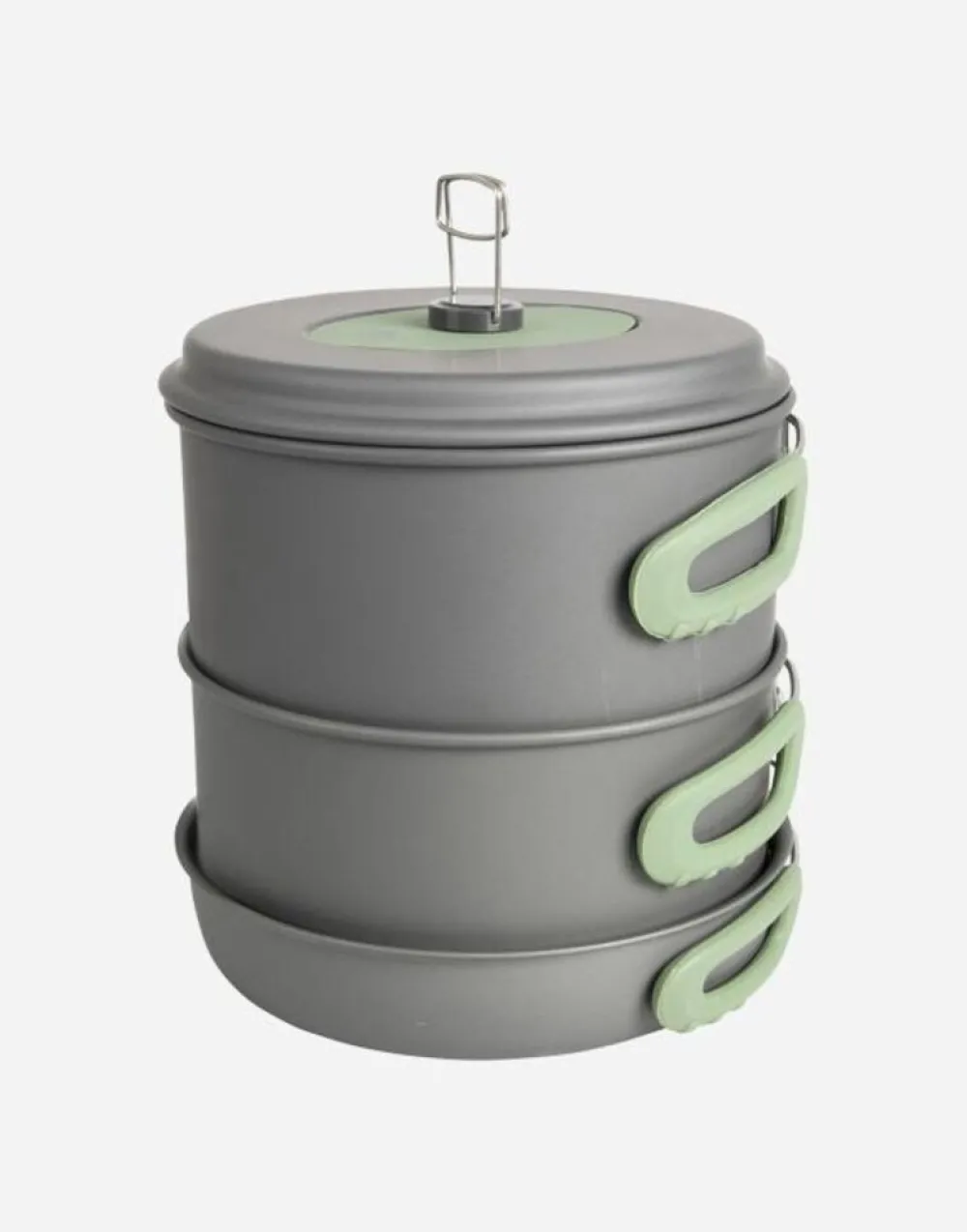 Een complete en ruime 4-delige lichtgewicht kookset. Bestaande uit 2 kookpannen, een koekenpan en een theeketel met een inhoud van 0,8 liter. Bij uitstek geschikt voor outdoor gebruik. De set is voorzien van hittebestendige en in te klappen handgrepen van siliconen. Gemaakt van stevig hard geanodiseerd aluminium waardoor er een verminderde kans is op aanbakken. Geschikt voor gas en benzinebranders. De pannen zijn in elkaar te stapelen waardoor ze compact op te bergen en te vervoeren zijn, inclusief draagtas.