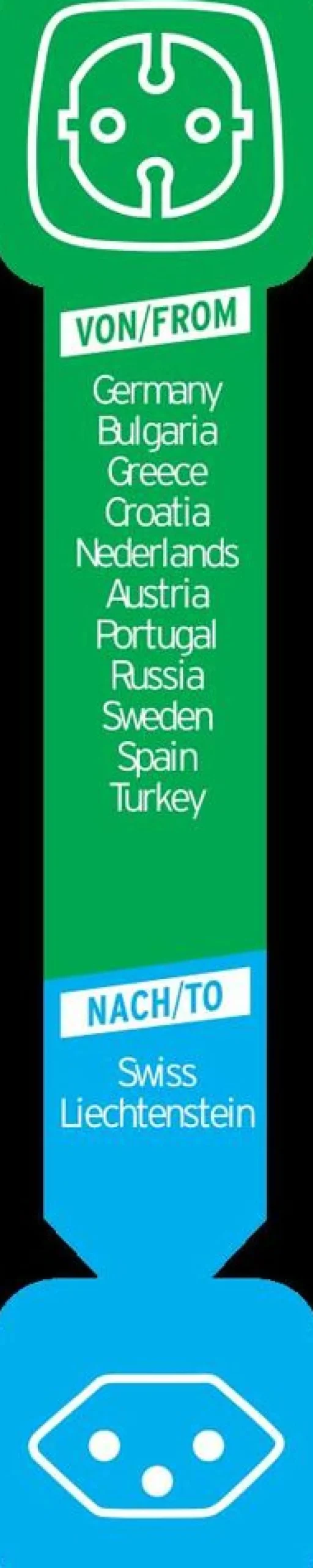 Reisadapter veiligheidscontact Type J an Europa naar Zwitserland/Liechtenstein: