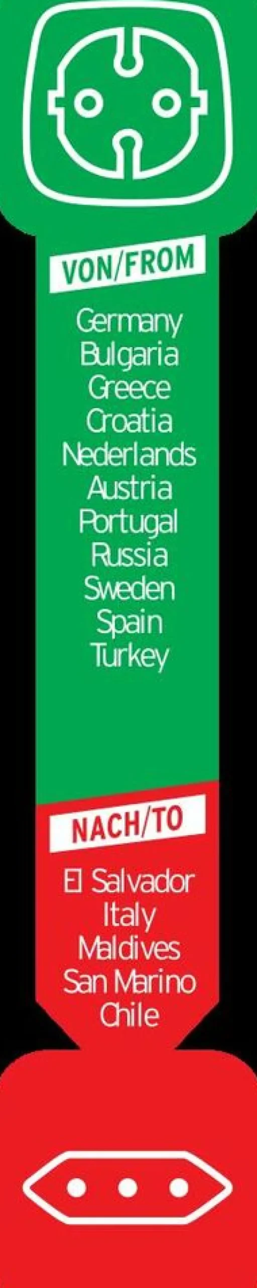 Reisadapter met aarding van Europa naar Italië / Malediven / El Salvador / Chili: