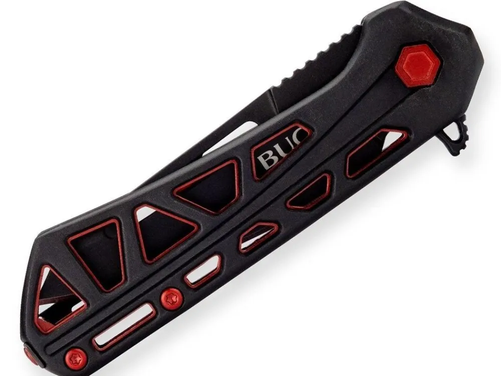 De Buck Mini Trace Ops is een EDC (Every Day Carry) mes met een unieke styling. Het lemmet is gemaakt van 7Cr staal, deze instap staalsoort laat zich eenvoudig slijpen en is meer dan geschikt voor alle dagelijkse snijtaken. Verder is het lemmet uitgerust met een flipper zodat het mes gemakkelijk en snel één handig geopend kan worden, vervolgens houdt de linerlock het mes stevig in geopende stand. Het opengewerkte geanodiseerd aluminium heft geeft het mes een unieke uitstraling, ook besparen deze uitsneden gewicht. Verder heeft aluminium een verfijnde uitstraling en een goede slijtvastheid. De Buck Mini Trace Ops is uitgevoerd met een omkeerbare draagclip, deze houdt het mes stevig op zijn plek aan riem of in een zak.