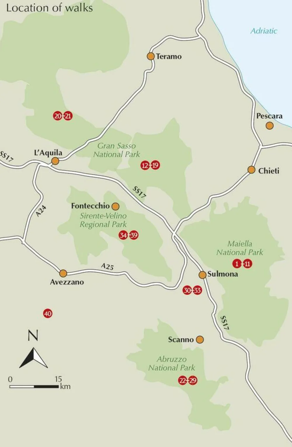 Guidebook for walking in Abruzzo, a wild region of Italy incorporating the Abruzzo, Maiella, and Gran Sasso national parks and the Sirente-Velino regional park. 40 day-walks are described including an ascent of Corno Grande, the highest point in the Apennines of peninsular Italy. The area is easily reached from the airports at Pescara and Rome.