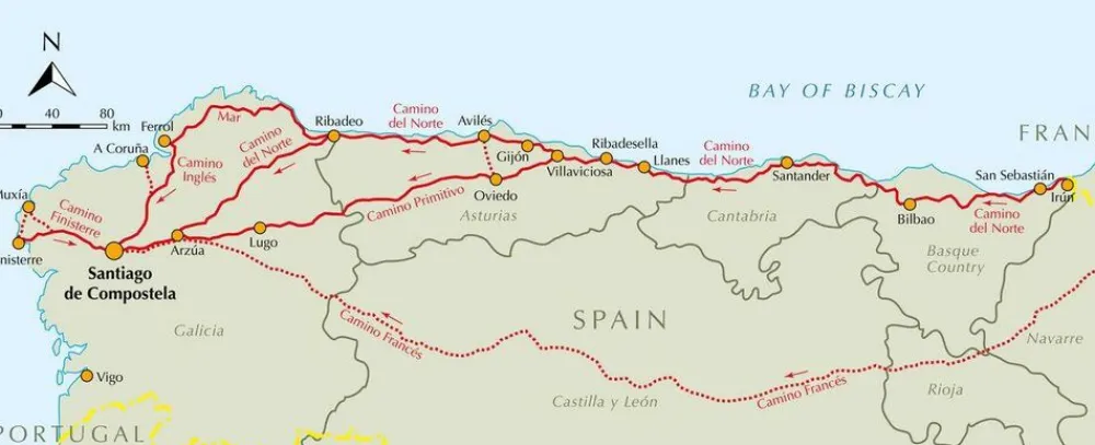 - Daarnaast nog een beschrijving van de Camino Finisterre (120 kilometer)