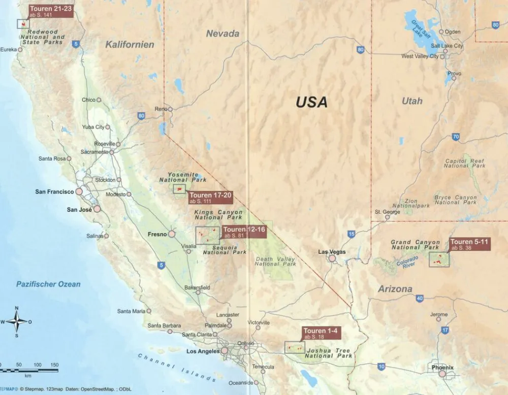 Duitstalige wandelgids 23 wandelingen in Californië en Arizona
