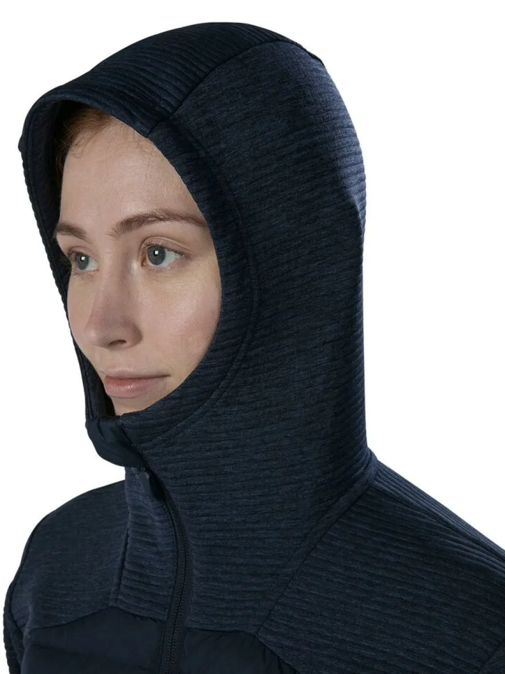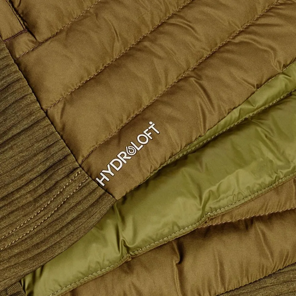 - Gevoerd met lichte, geavanceerde synthetische Hydroloft® Polyball-isolatie, met fleece gebreide mouwen en capuchon