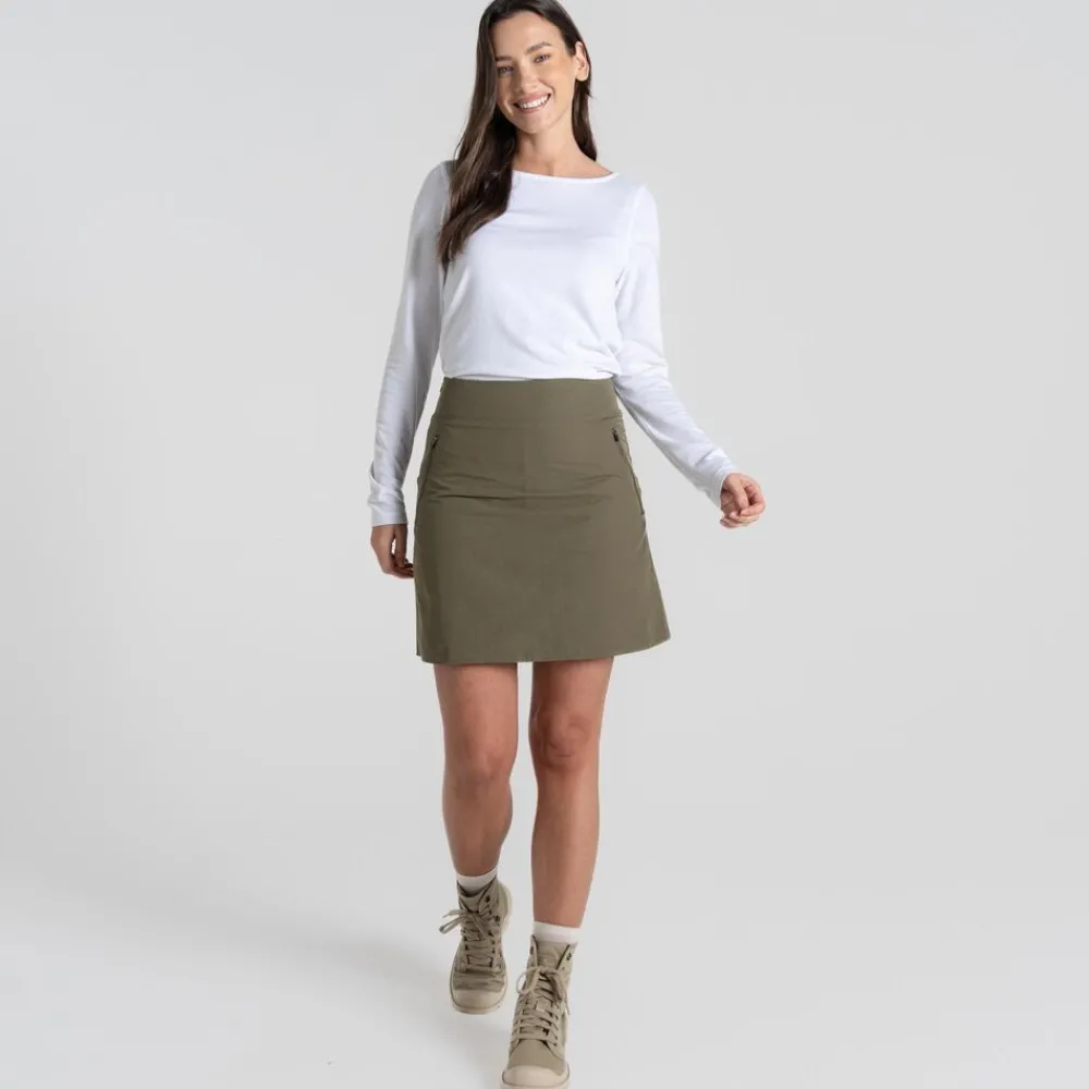 De NosiLife Pro Skort van Craghoppers is een stretchrokje met binnenbroekje, lichtgewicht en behandeld met een insectenwerend middel.
