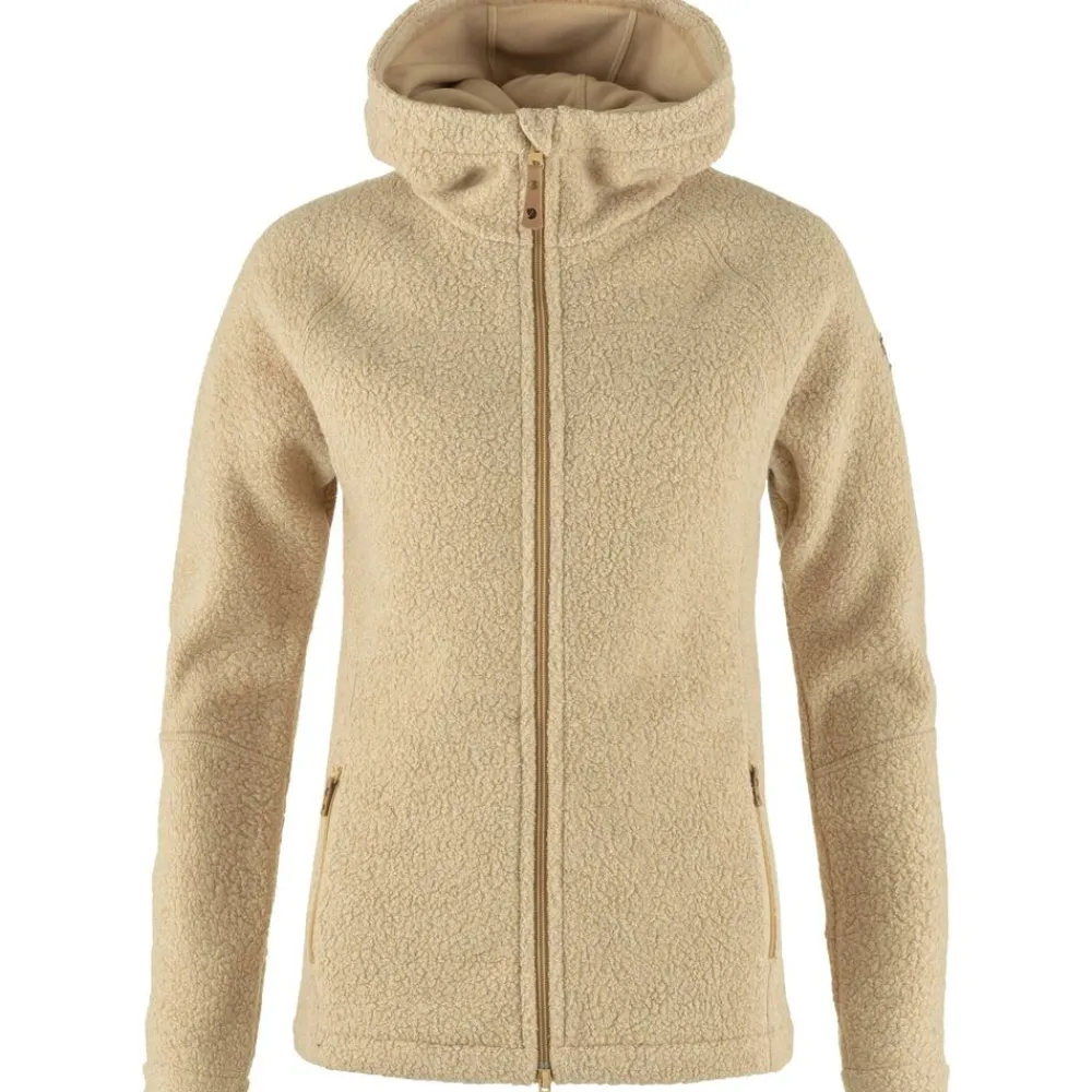 De Kaitum Fleece van Fjällräven is comfortabel fleecejack met heerlijke capuchon en fijne schapenvachtafwerking. Gemaakt van een functioneel wolmengsel: de temperatuurregulerende eigenschappen van wol gecombineerd met de duurzaamheid van polyester. Geschikt als warme en vochtafvoerende tussenlaag onder een shelljack te dragen en als vest voor na de tocht. Fijne capuchon met voering van microfleece die zeer zacht aanvoelt en extra bescherming biedt bij koud weer. Doorlopende rits op de voorzijde met beschermoverslag aan de kin. Fraai damesmodel met ruime pasvorm.