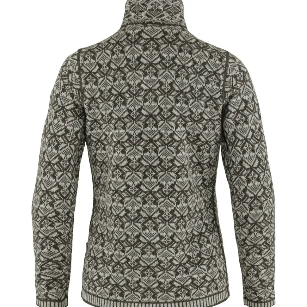 De Snow Cardigan van Fjällräven is een jacquard gebreid vest van zachte, warme lamswol. Met een patroon dat geïnspireerd is op de Scandinavische folklore.