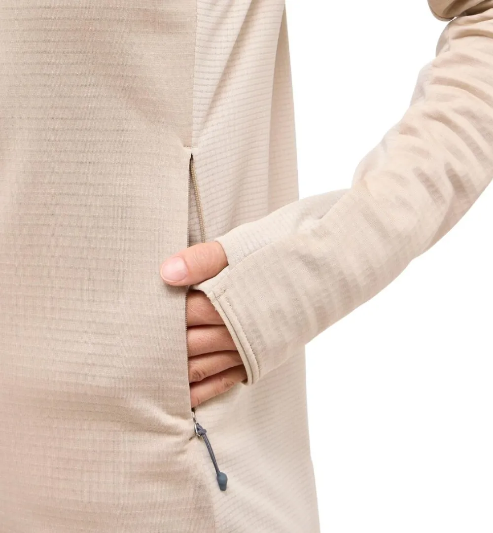 De L.I.M Mid Fast II Hood van Haglöfs is een lichtgewicht mid-layer. Deze veelzijdige mid-layer is ontworpen voor diverse activiteiten in wisselende weersomstandigheden. Hij is gemaakt van Polartec® Power Wool™, met een zachte merino wollen binnenkant die vocht afvoert en een duurzame synthetische buitenkant die het vocht naar buiten transporteert. De body-mapped constructie verhoogt het ademend vermogen op belangrijke warmtezones, en de strakke capuchon past onder een helm voor extra comfort.