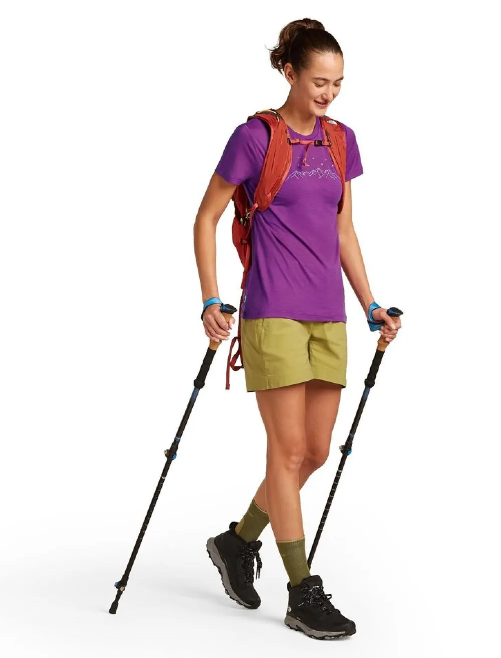 De W Merino 150 Tech Lite SS Tee Sparkling Stars van Icebreaker is een 100% merino wollen t-shirt met korte mouwen en een lage ronde hals, voor dames. Een veelzijdig t-shirt dat bij alle mogelijke avonturen comfortabel, ademend en geurbestendig blijft.