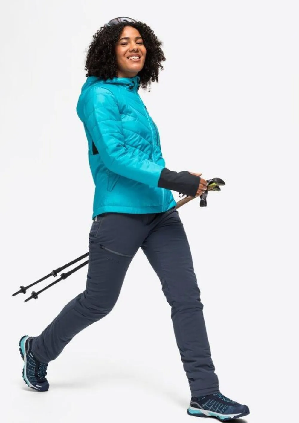 Een soepele, warme wandelbroek die zich, met natuurlijke eigenschappen, aanpast aan de temperatuur en aan de mate van inspanning.