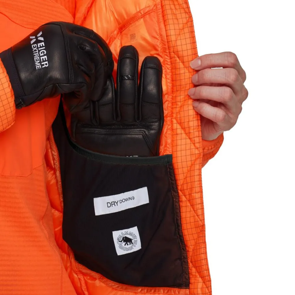 De Eiger Nordwand Light Down IN Hooded Jacket van Mammut uit de MAMMUT EIGER EXTREME serie, is lichtgewicht en isoleert met een laag volume. Deze compacte en klein op te vouwen jas (met bijgeleverd stuffzakje) is een geweldig kledingstuk voor het lagensysteem.