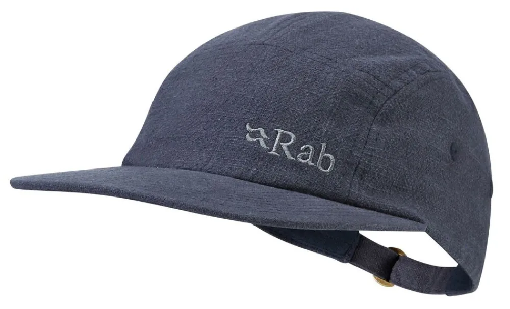De Obtuse 5 Panel Cap van RAB heeft een platte klep en structuurstof, de pet is comfortabel en geventileerd, met een trucker-achtig ontwerp en verstelbare achterkant.