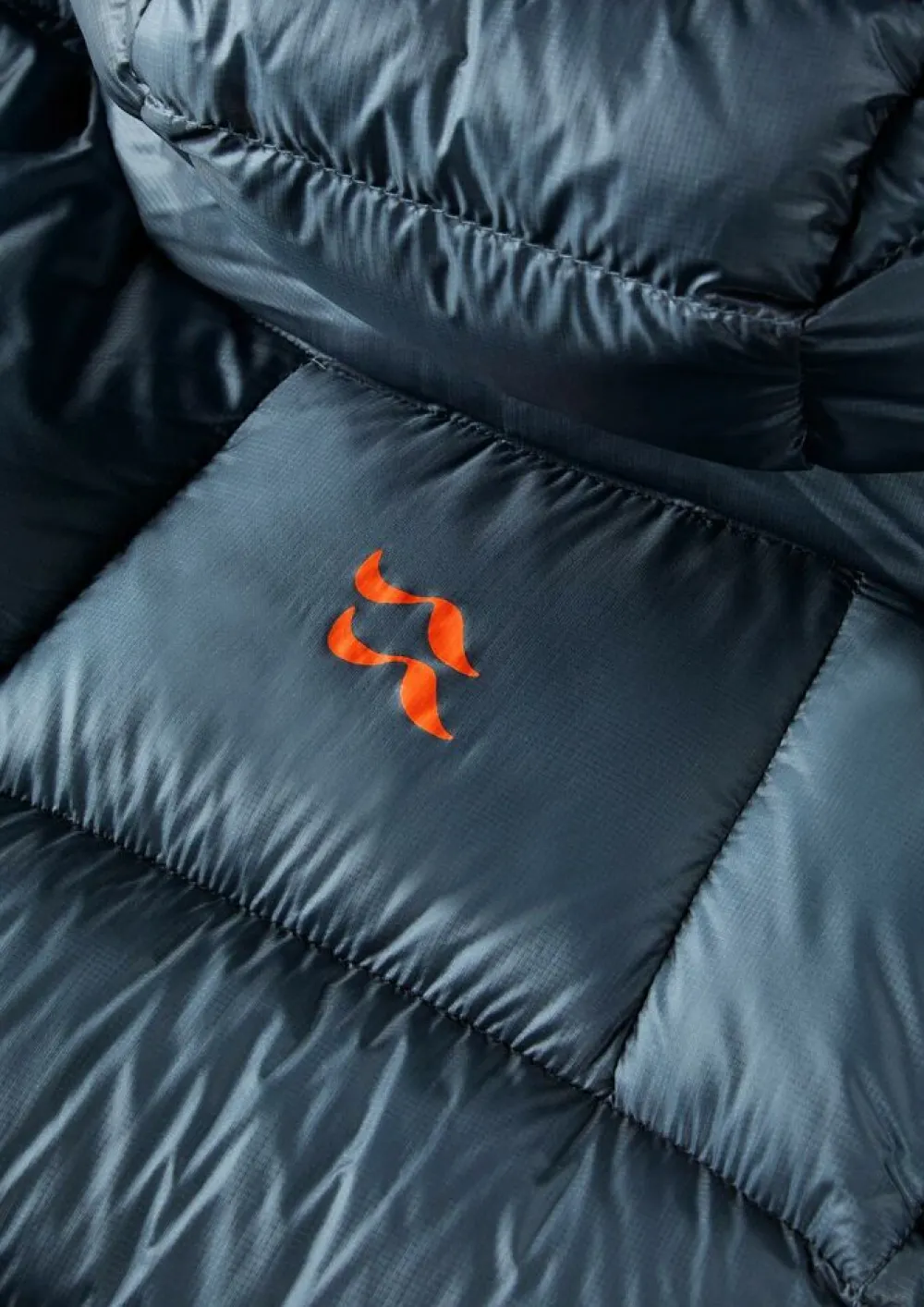 De Mythic Alpine Jacket van RAB is een lichtgewicht warme donsjas. Gemaakt voor het alpiene werk in de bergen. Om het gewicht tot een minimum te beperken is de buitenstof ultralicht, deze is slechts 10 denier en is 100% gerecycled. Deze Pertex® Quantum-stof met ingebouwde ripstop is sterk, duurzaam, weerbestendig en voelt zacht aan. De Mythic Alpine jacket is nauwsluitend en heeft weinig volume, de jas kan gemakkelijk onder een hardshell worden gedragen en helpt vocht te reguleren.