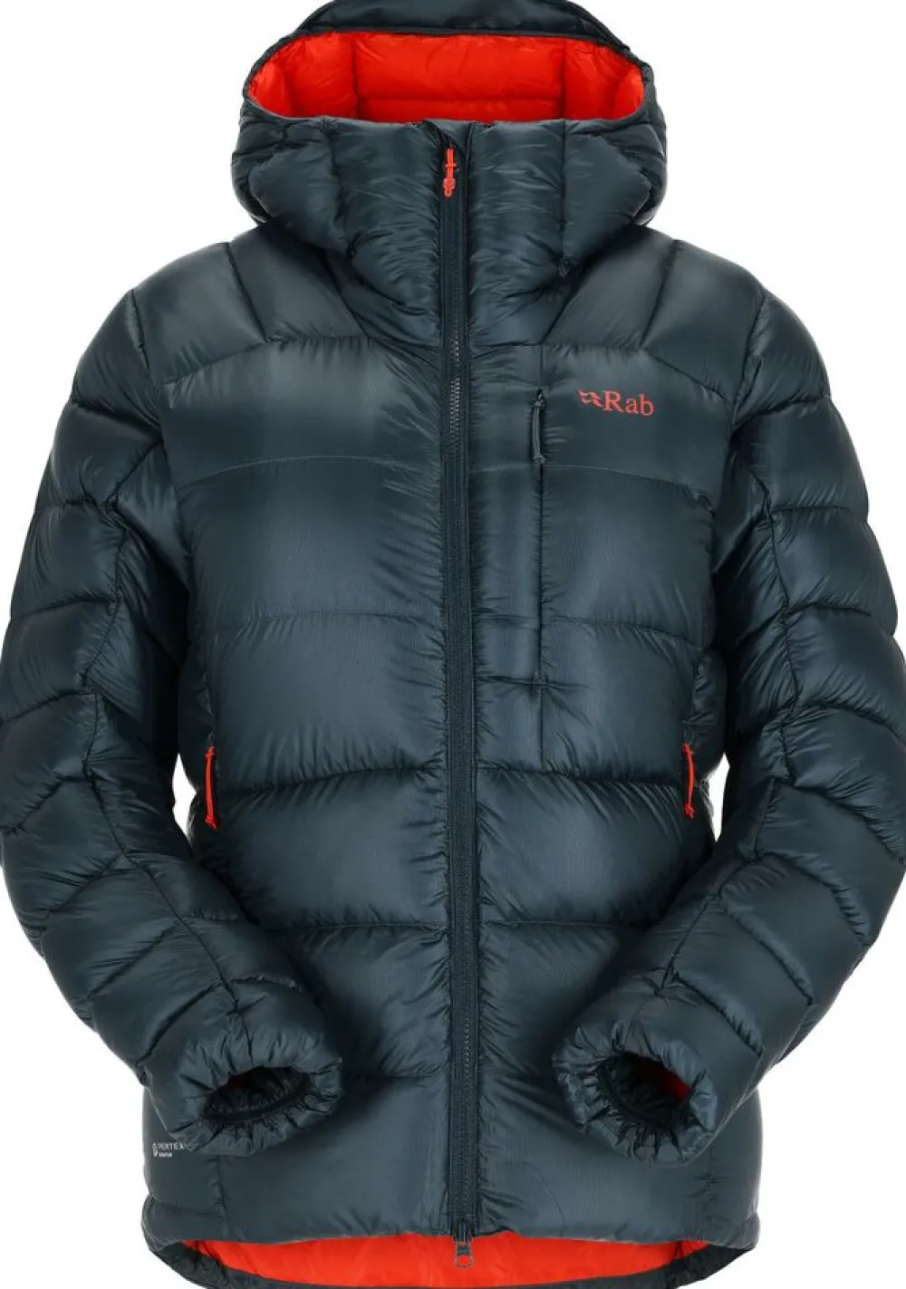 De Mythic Ultra Jacket van RAB, is een warme lichtgewicht donsjas, deze is gemaakt voor gebruik door alpinisten en bergbeklimmers, deze donsjas heeft een capuchon die compatibel is met een helm, een tweewegritssluiting aan de voorkant voor gebruik met een klimgordel en fijne voorgevormde mouwen om makkelijk in te kunnen bewegen met klimmen.