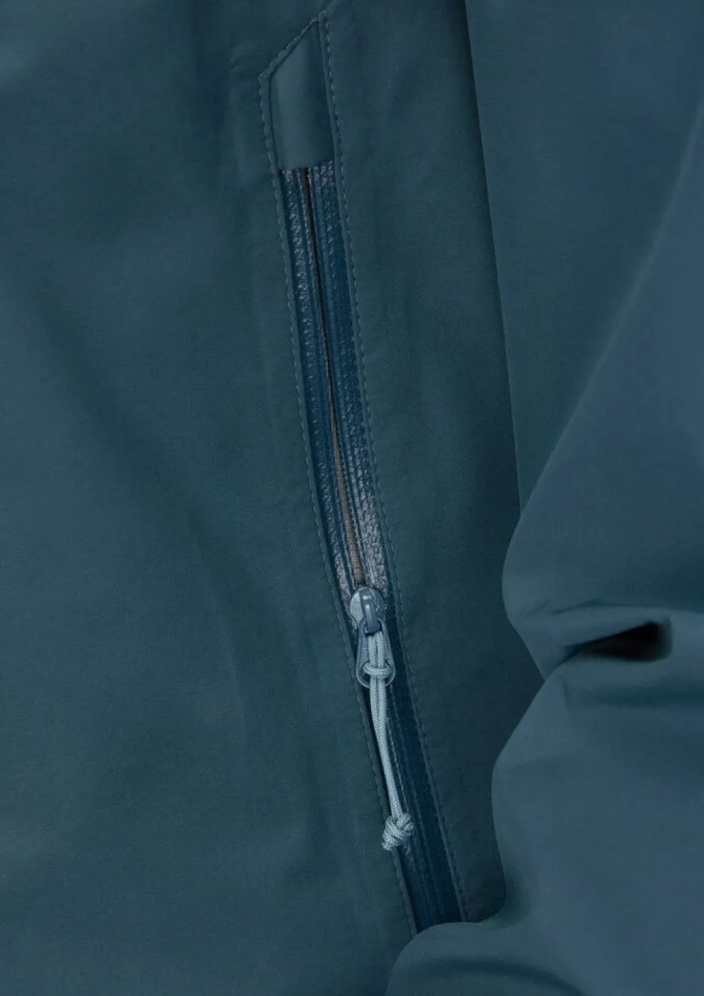 De jas is ontworpen voor uitzonderlijk comfort op de berg, met ventilatieopeningen onder de armen waardoor je warmte kunt afvoeren, en een met fleece gevoerde kinbescherming voor als je het weer buiten houdt op een stormachtige bergkam. De in twee richtingen verstelbare capuchon kan met één handbeweging worden vastgemaakt en zorgt ervoor dat het hoofd gemakkelijk gedraaid kan worden met een onbelemmerd gezichtsveld. De capuchon heeft een verstevigde klep, die je gezicht helpt beschermen tegen regen. De met klittenband verstelbare manchetten sluiten naadloos aan bij handschoenen, en er zijn twee handzakken voor het verwarmen van gevoelloze vingers op de koudste dagen.