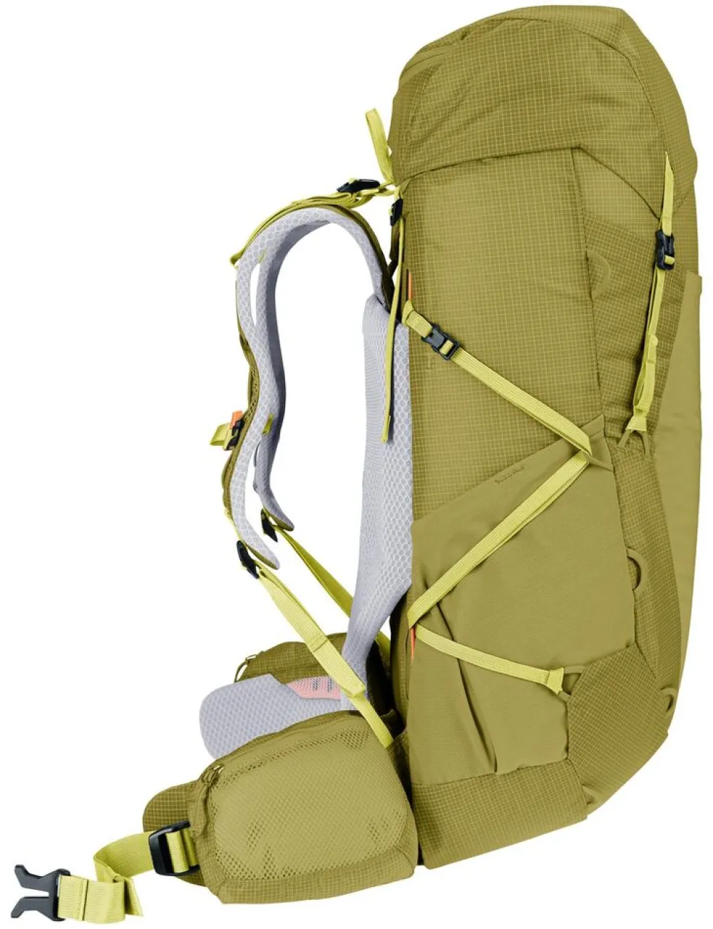 De Aircontact Ultra 35 + 5 SL van Deuter is perfect voor thru-hikers die hun grenzen willen verleggen en behoefte hebben aan een lichtgewichte, betrouwbare rugzak voor hun buitenavontuur. De basis van deze rugzak bestaat uit het bekende Aircontact rugsysteem. Het zeer ademende Air Spacer Mesh zorgt voor optimale ventilatie en minimaliseert het contact met de rug, terwijl het totale gewicht van de rugzak laag blijft. De eenvoudige Clip & Loop ruglengteverstelling en ergonomisch gevormde heupvinnen zorgen voor een op maat gemaakte pasvorm met een superieur draagcomfort over lange afstanden. Teruggebracht tot de essentie, biedt deze lichtgewicht rugzak de perfecte balans tussen comfort en gewicht, zodat je meer energie aan de trails kunt besteden. En dankzij het slijtvaste ripstop materiaal kan deze rugzak vrijwel alles aan. Het deksel kan worden verwijderd om extra gewicht te besparen, waarna je het hoofdvak met behulp van een trekkoord en drukknoopsluiting kunt afsluiten. Je kunt de modulaire materiaalriemen verwijderen of juist verplaatsen, zodat je de Aircontact Ultra aan jouw eigen wensen aan kunt passen. Met de riemen kun je wandelstokken, tentstokken of zelfs een dekzeil aan je rugzak bevestigen. De Aircontact Ultra 35 + 5 SL laat duidelijk zien dat buitensporten en milieuvriendelijkheid hand in hand kunnen gaan. Als een bluesign® product, voldoen deze modellen aan de strenge Green Button criteria. Daarnaast is deze damesrugzak klimaatneutraal, PFAS vrij en volledig aangepast aan de anatomie van het vrouwenlichaam.