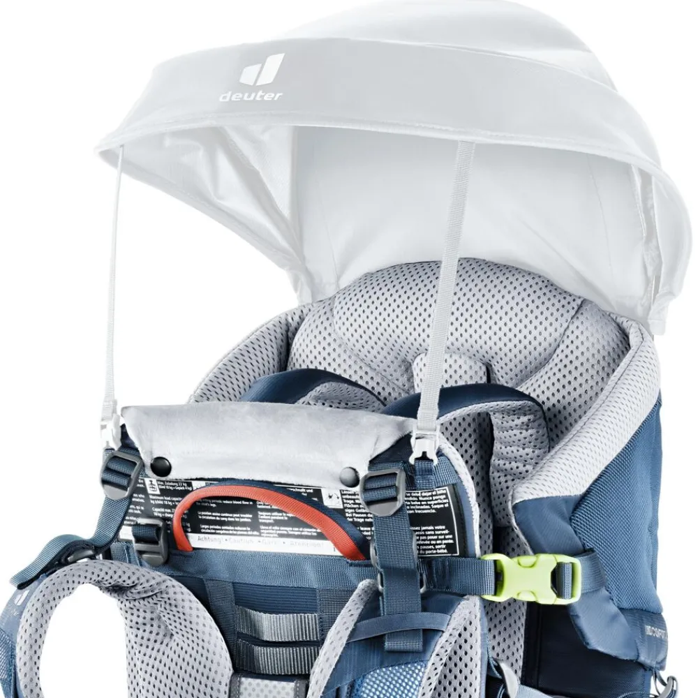 De Kid Comfort Active van Deuter is voorzien van het nieuwe, compacte Lite Air-contactrug met ventilatie en is daarmee een zeer lichtgewicht kinderdrager. Maar de sportieve kinderdrager biedt ook comfort en is natuurlijk voorzien van het TÜV GS-keurmerk. Dankzij de eenvoudig te bedienen en goed toegankelijke veiligheidsgordel, de zijdelingse instap en de aangename bekledingsstof wordt het zitgedeelte voor het kind een echte feel-good zone. Dankzij de unisex-pasvorm met speciaal aangepaste schouderbanden en heupvinnen kunnen zowel mama als papa de kinderdrager afwisselend dragen.
