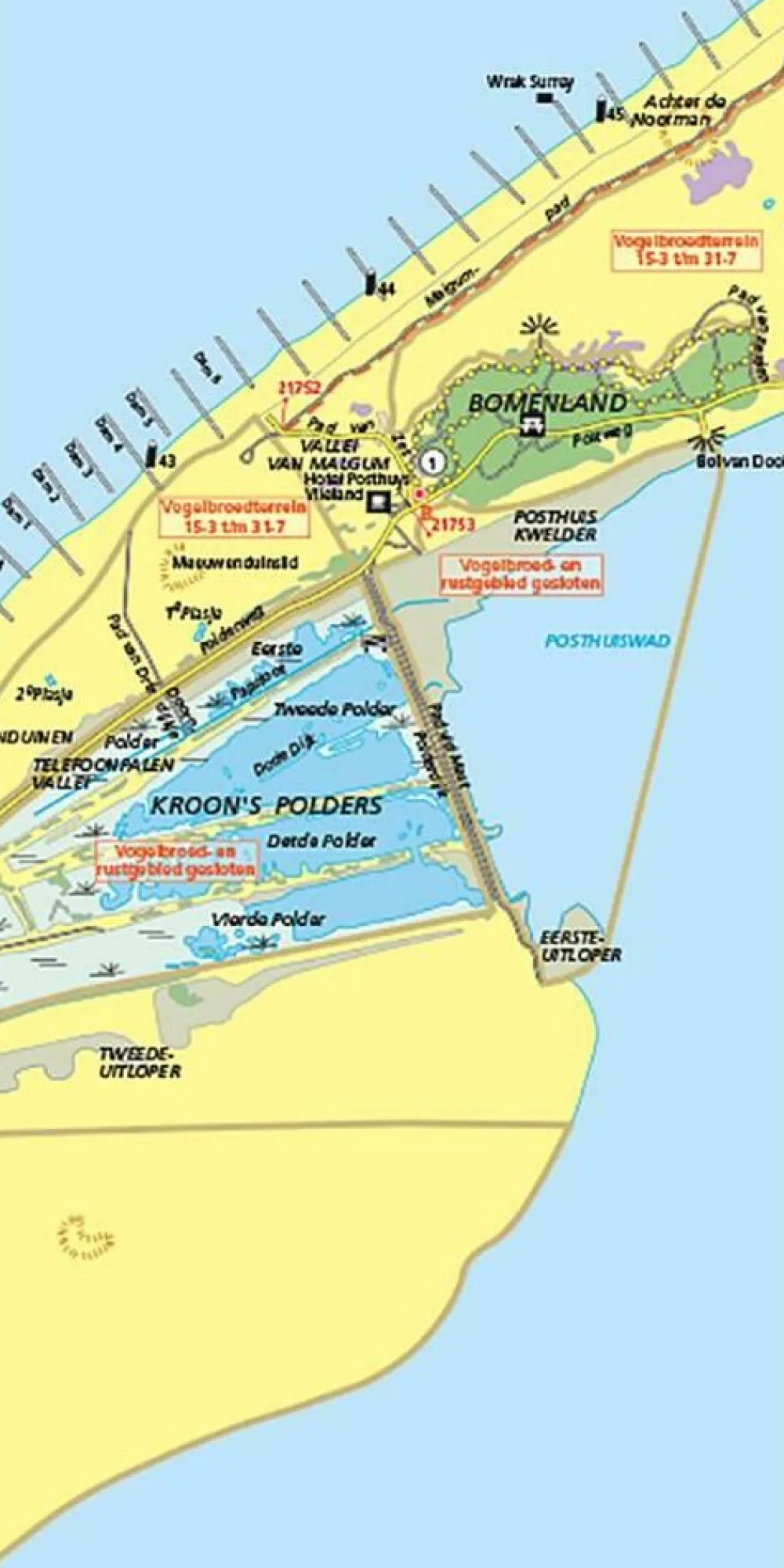- deelkaart van Oost-Vlieland schaal 1:15.000