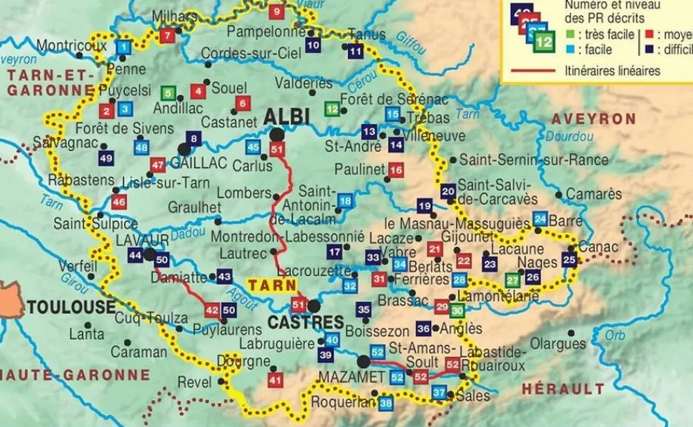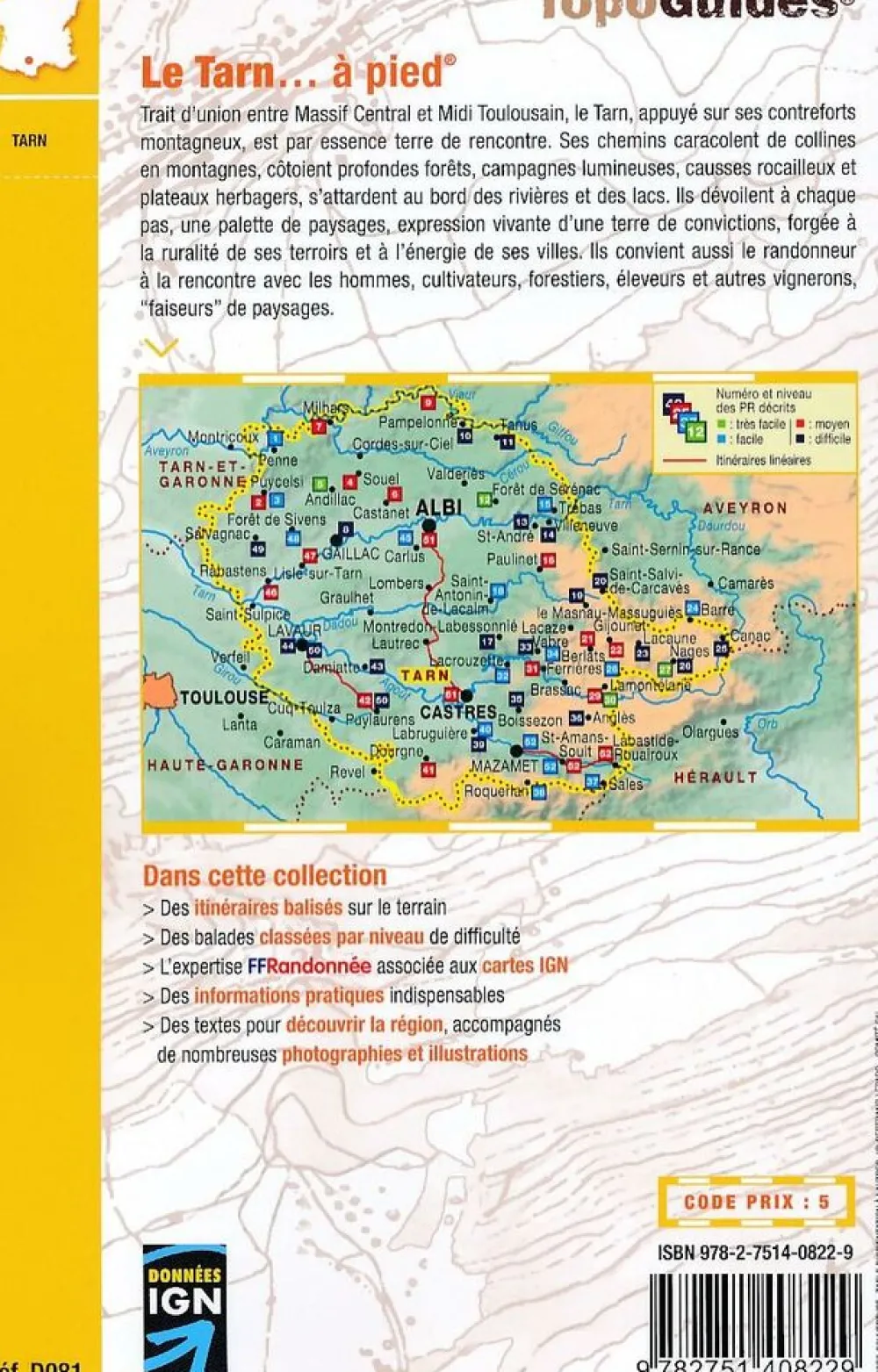 Franstalige wandelgids met 52 wandelingen in de Tarn: rond Albi, Gaillac, Castres.