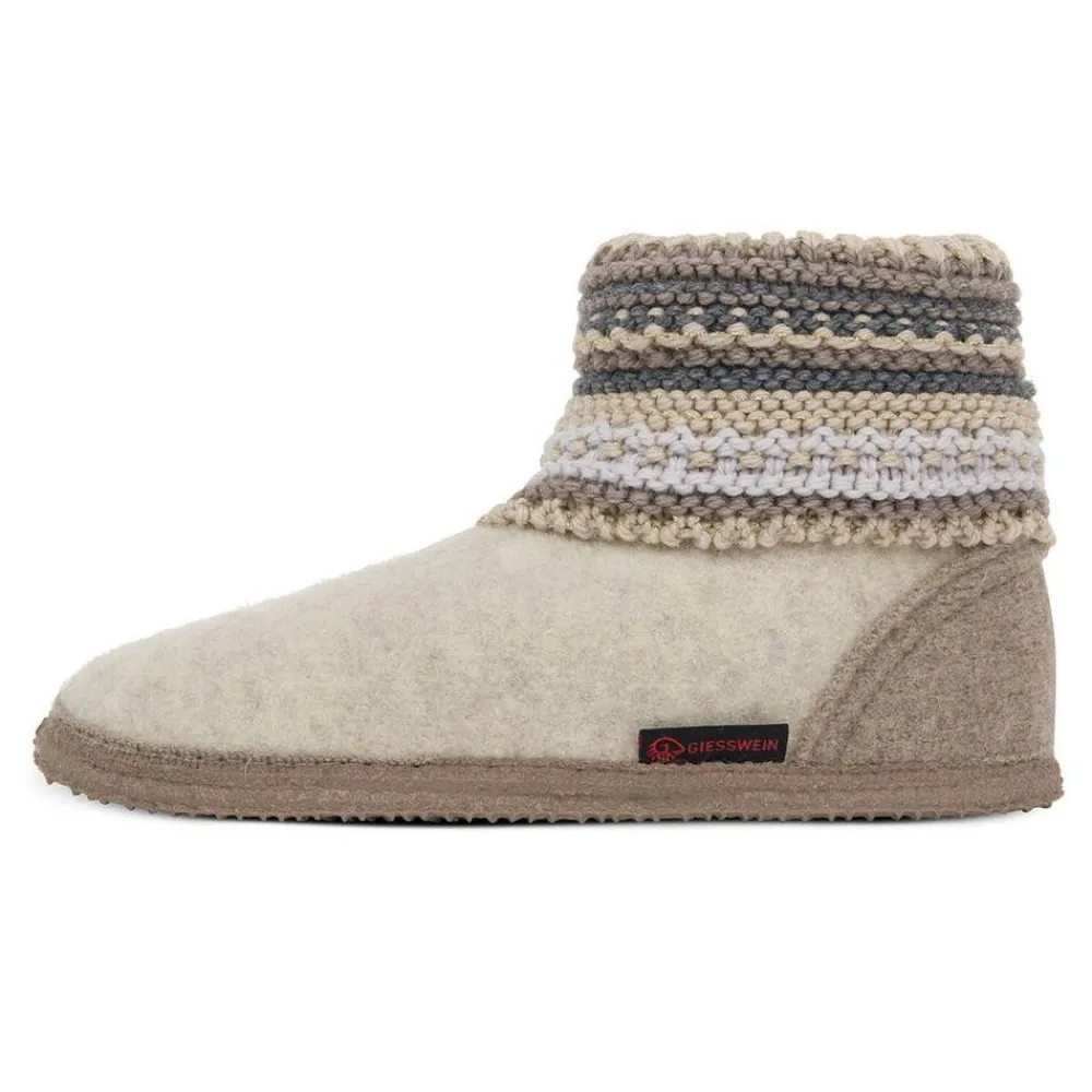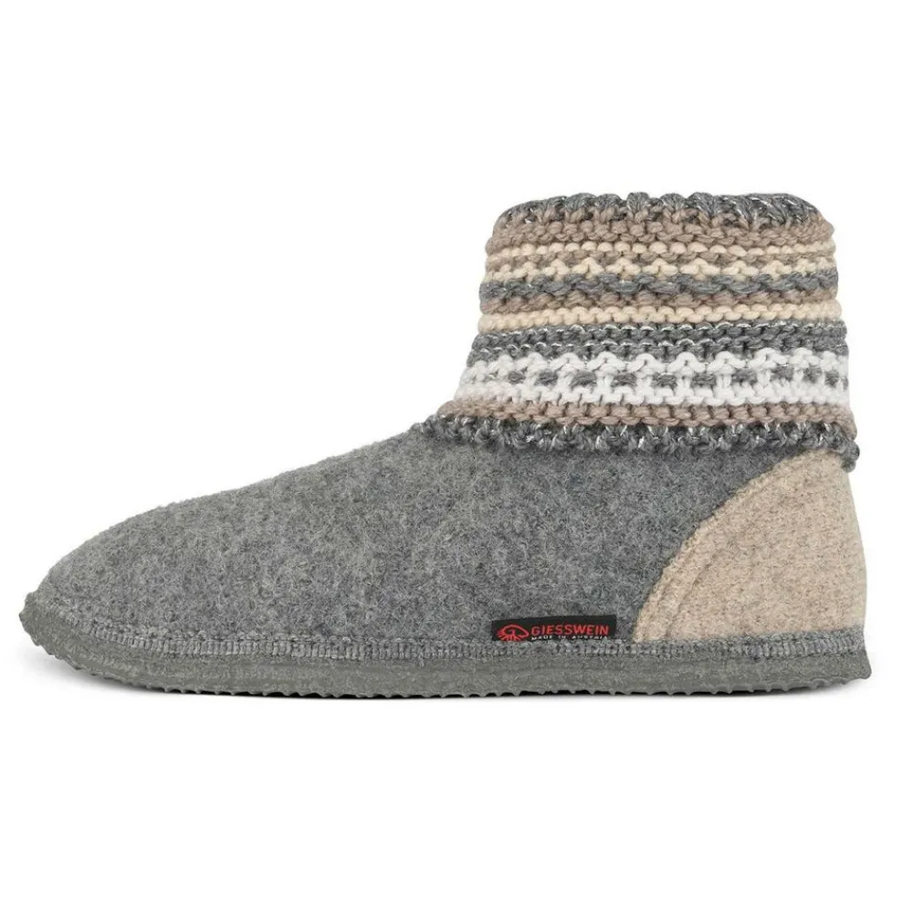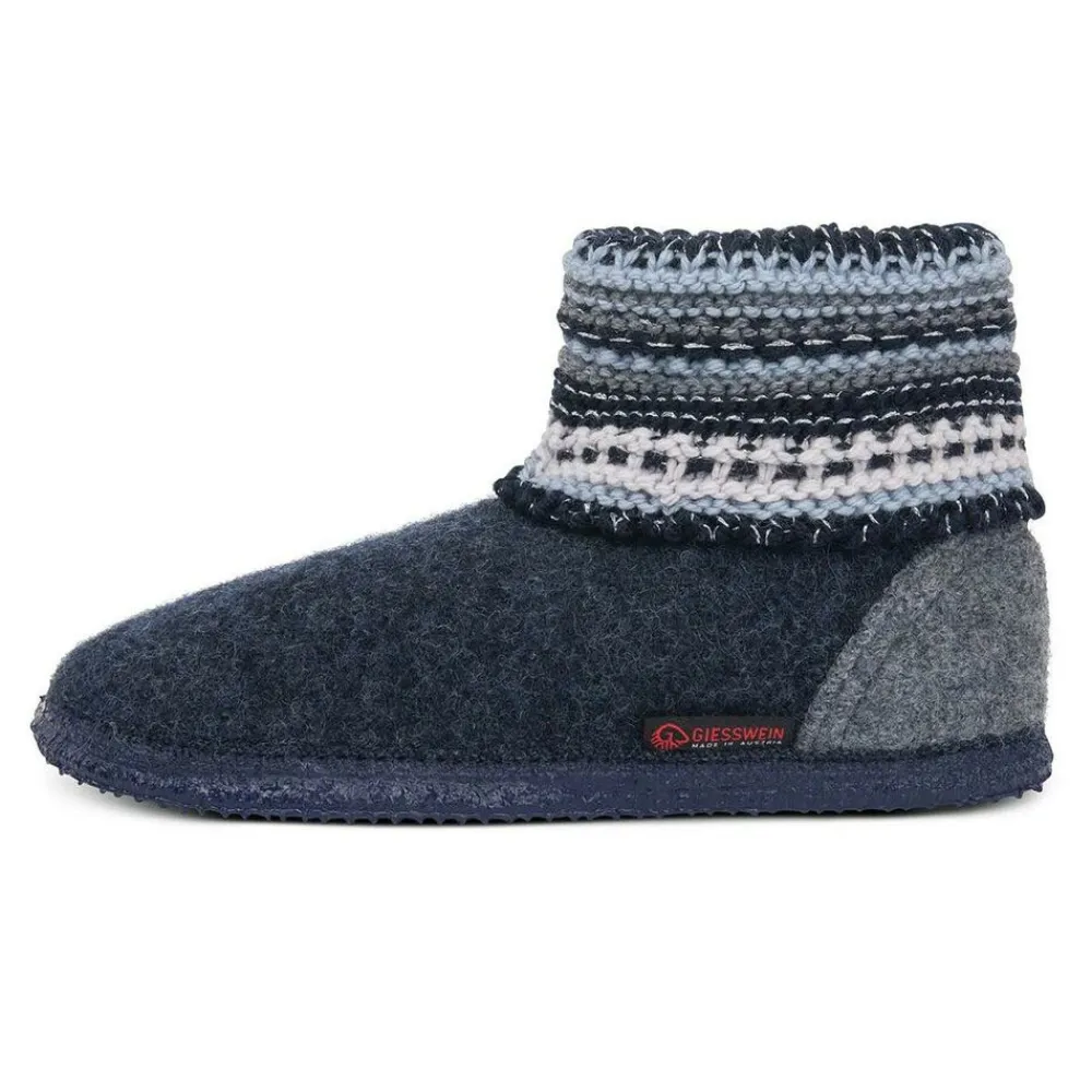 De Kiel van Giesswein, is een comfortabele wollen slof, heerlijk warm voor in huis. Het gebreide boord is warm en zacht en heeft een Noorse look. De voorkant is naadloos en de hiel wat verstevigd, de zool is van natuurrubber en zorgt voor een prettige antislip laag.