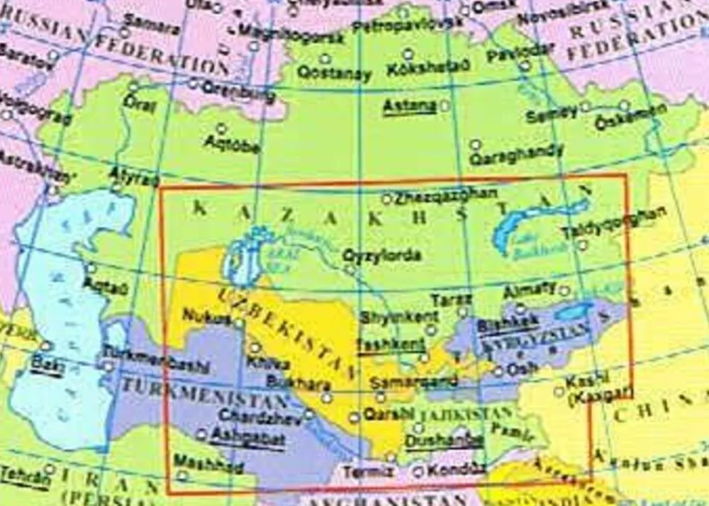 Wegenkaart van Centraal Azië – Kirgizstan (Kirgizië), Tadzjikistan, Turkmenistan en Oezbekistan.