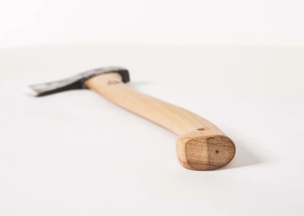Deze bijl, die wat kleiner is dan de Scandinavian Forest Axe, is makkelijker mee te nemen in een rugzak vanwege de lengte, maar is toch nog groot genoeg om wat zwaarder werk mee te verrichten.