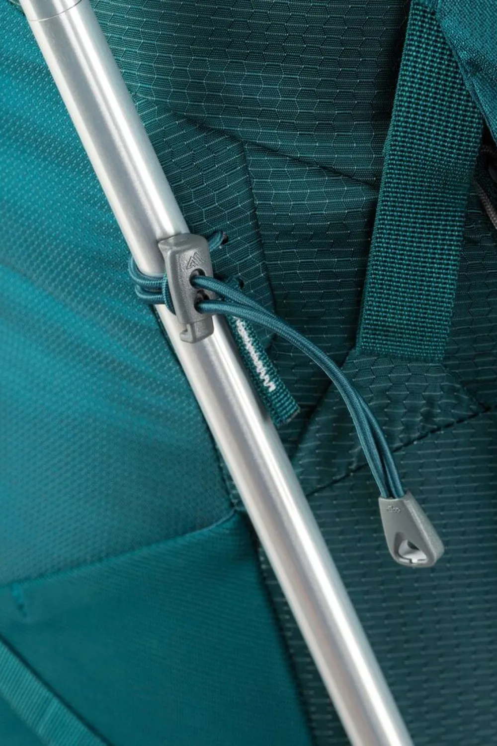 Deva 60 van Gregory is een verstelbare dames rugzak die ook indien zwaar bepakt 20kg comfortabel draagt.