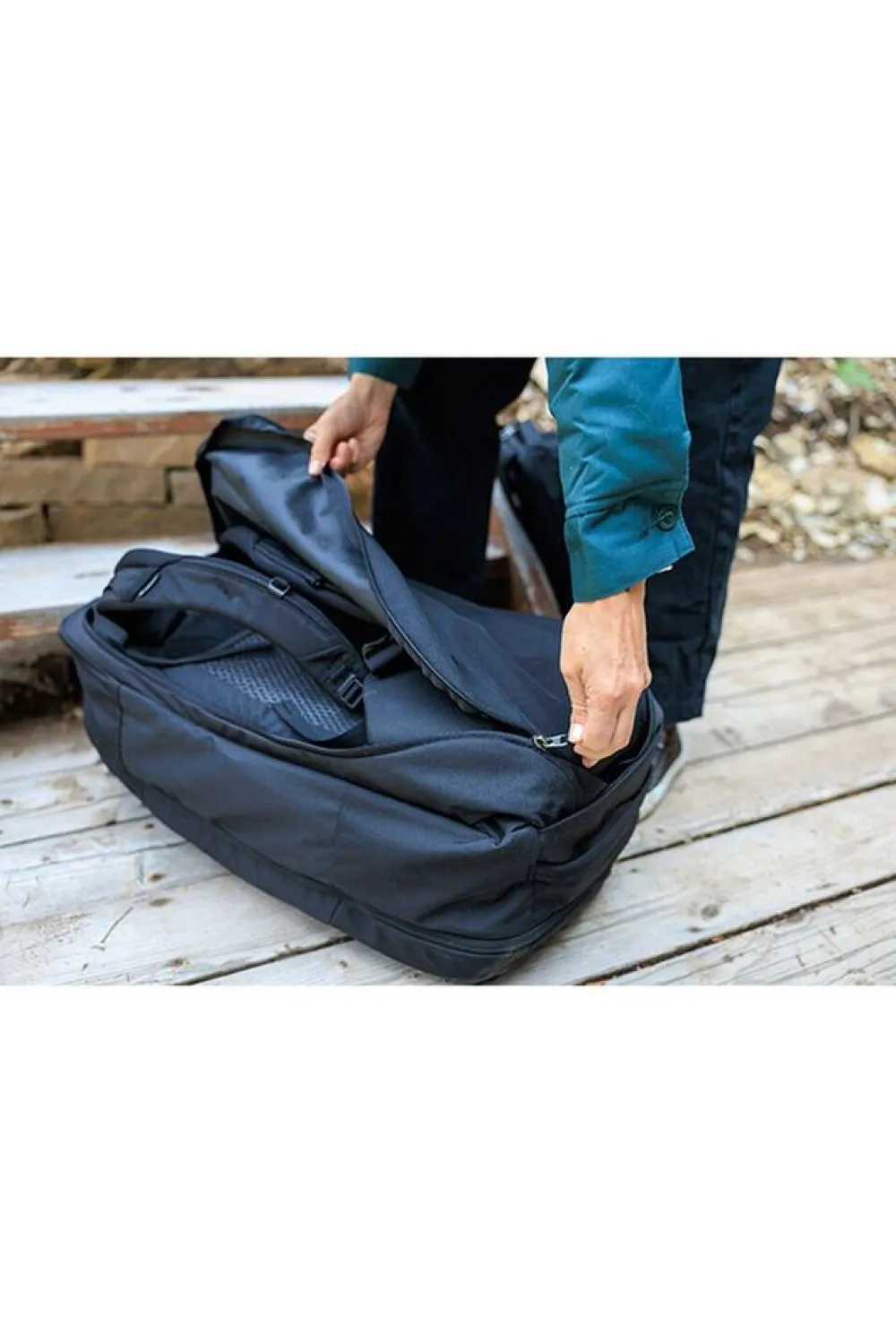 - De 50 liter grote rugzak heeft een splitcase toegang met een gevoerd, beschermd voorpaneel.