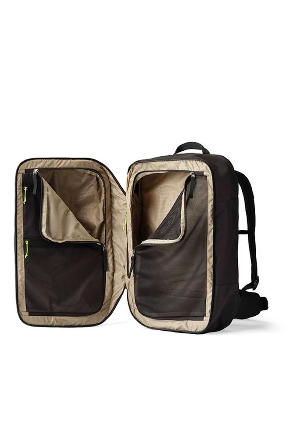 - Split-case, bagage-stijl toegang met een gewatteerd, beschermd voorpaneel