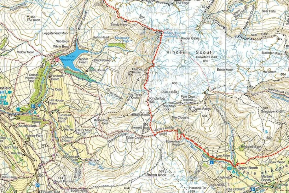 Regio: Kinder Scout, Edale, Chapel-en-le-Frith, Buxton, Castelton, Hatersage, Ladybower Reservoir.