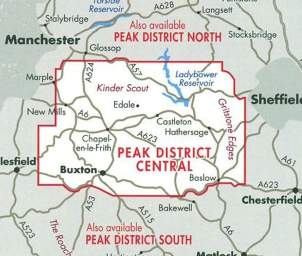 Includes Kinder Scout, the Gritstone Edges, Edale and Ladybower Reservoir.