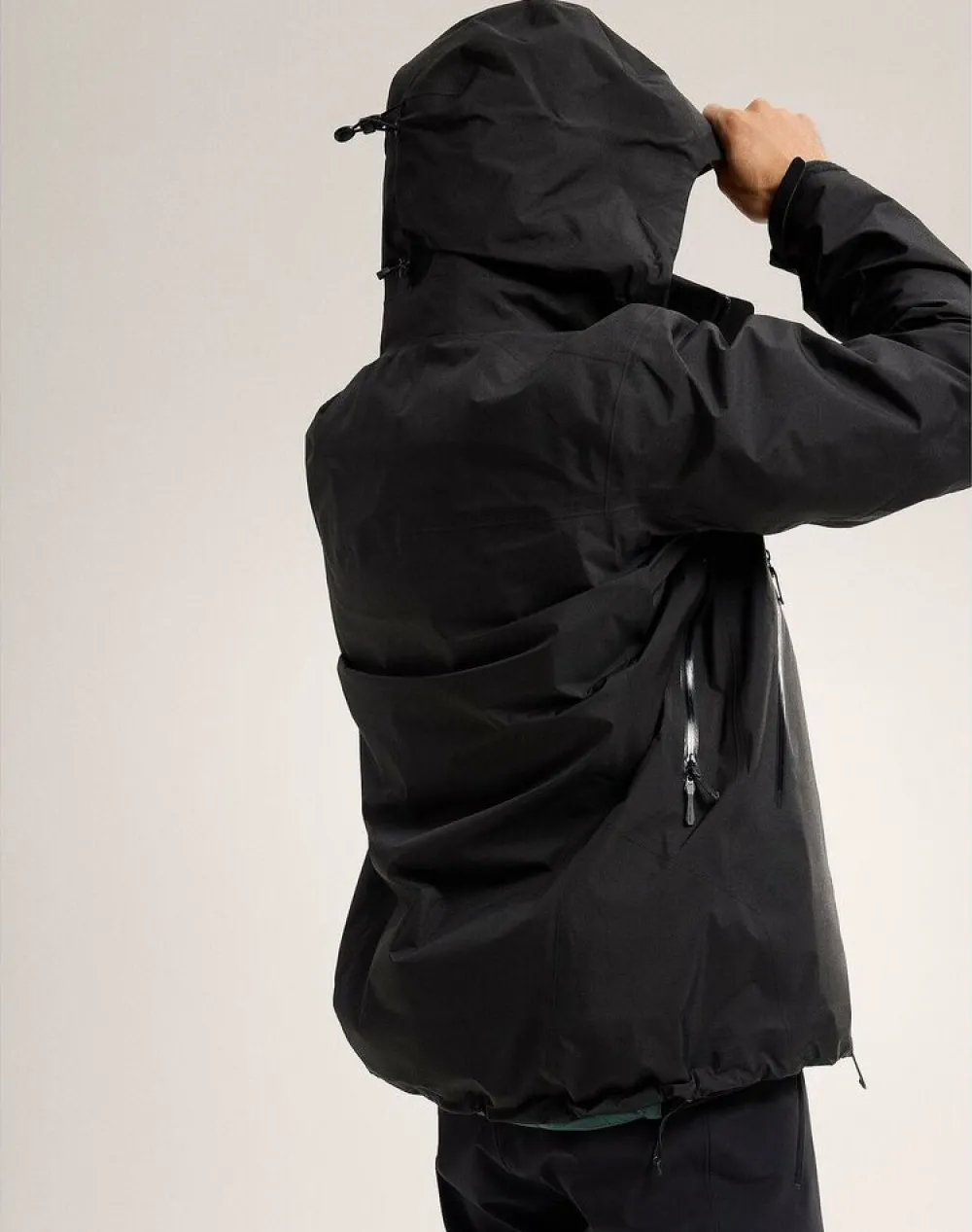 - Een ruime en goed verstelbare DropHood™ capuchon; geschikt om over een helm te dragen