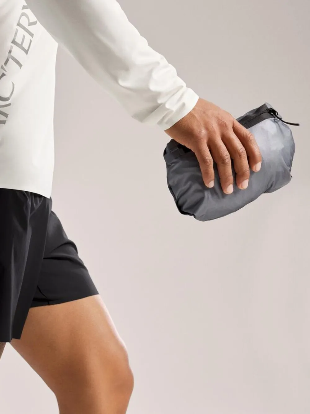Het Norvan Jacket van Arc’teryx is ontworpen voor trail-running met hoge output in natte omstandigheden en weegt slechts 215 gram. De Norvan is een ultralichte 3 laags GORE-TEX ePE jacket, met GORE C-Knit backer technologie, zacht op de huid, zeer ademend en gemaakt van gerecycled materiaal. De Norvan is gemaakt met FC0 DWR (Durable Water Repellent) voor PFAS-vrije bescherming tegen het weer met een kleinere ecologische voetafdruk. De capuchon heeft een eenpunts verstelling, dit biedt extra bedekking. Ventilatieopeningen onder de armen en op het rugpand zorgen voor een temperatuurregulerende luchtstroom. Grote reflecterende merkelementen voor extra zichtbaarheid bij weinig licht. Klein geïntegreerd venster in elke mouw zodat je je horloge kunt zien. Enkele zak met rits op de heup houdt kleine benodigdheden opgeborgen en bergt het jack compact op.