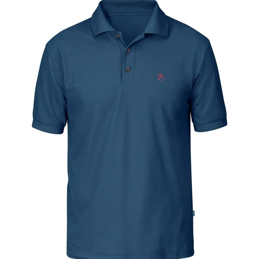 Het Crowley Pique Shirt van Fjällräven is een lichtgewicht en sneldrogende polo met korte mouwen, gemaakt van 100% gerecycled polyester.