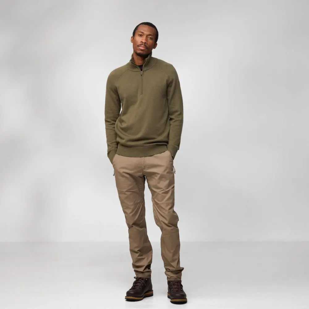 Comfortabele, lichte trui van een mix van ZQ-gecertificeerde merinowol en biologisch katoen die de vochtafvoerende en temperatuurregulerende eigenschappen van wol combineert met de zachtheid van biologisch katoen. De Övik Lite Half Zip Sweater voor heren is het perfecte kledingstuk voor het tussenseizoen dat je buiten warm en comfortabel houdt. Dankzij de langere rits trek je de trui heel gemakkelijk aan en uit, terwijl de middelhoge kraag je nek warmhoudt.