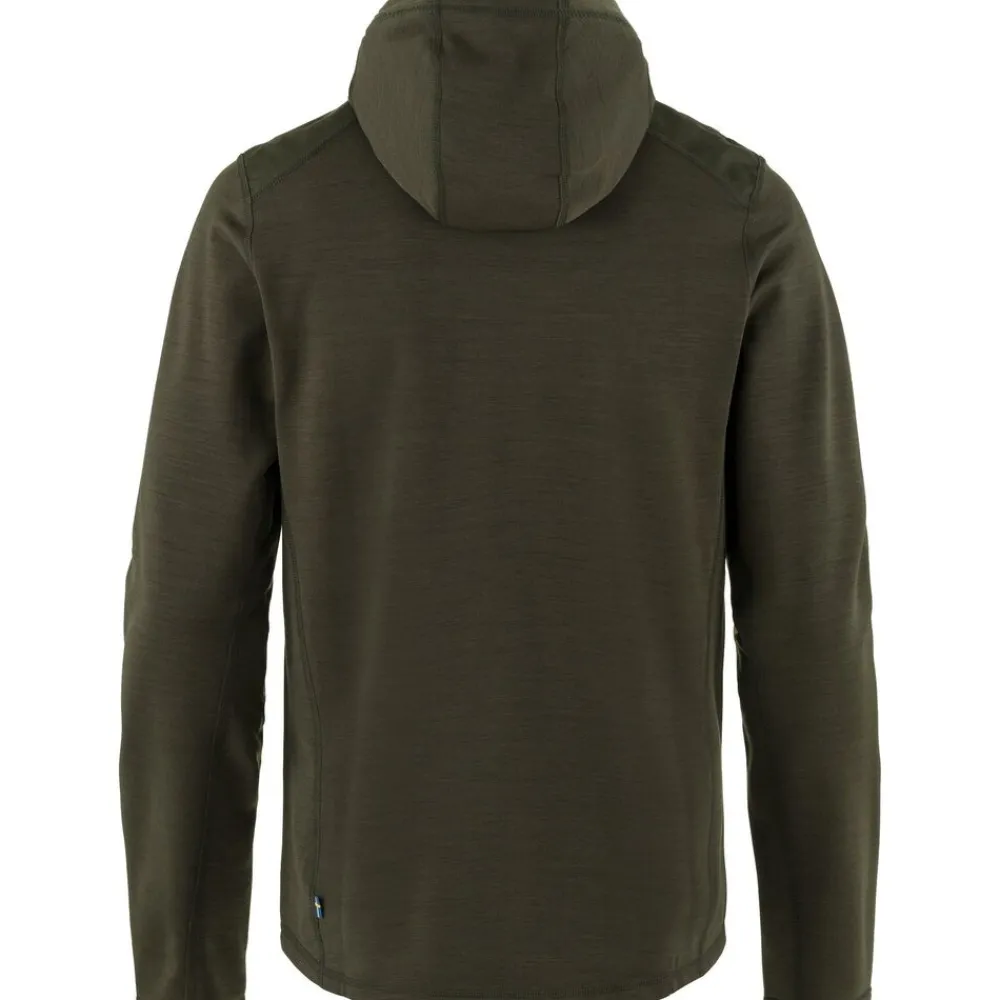 De Keb Fleece Hoodie M van Fjällräven is een isolerende en vochtafvoerende fleecehoodie, perfect als tussenlaag, het hele jaar door. Gemaakt van een blend van gerecycled polyester en een traceerbare wol en verstevigd met G-1000® op de schouders, voor extra slijtvastheid.