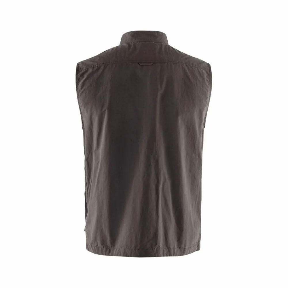 De Travellers MT Vest M van Fjällräven is een lichtgewicht vest met veel zakken, gemaakt van MT materiaal. Een mix van gerecycled polyamide en biologisch katoen. De luchtige stof voelt prettig aan op de huid. Zelfs op heel warme, plakkerige dagen.